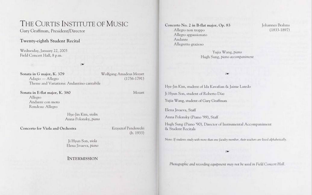 | 22 January 2003 Philadelphia, PA (Twenty-eighth Student Recital)